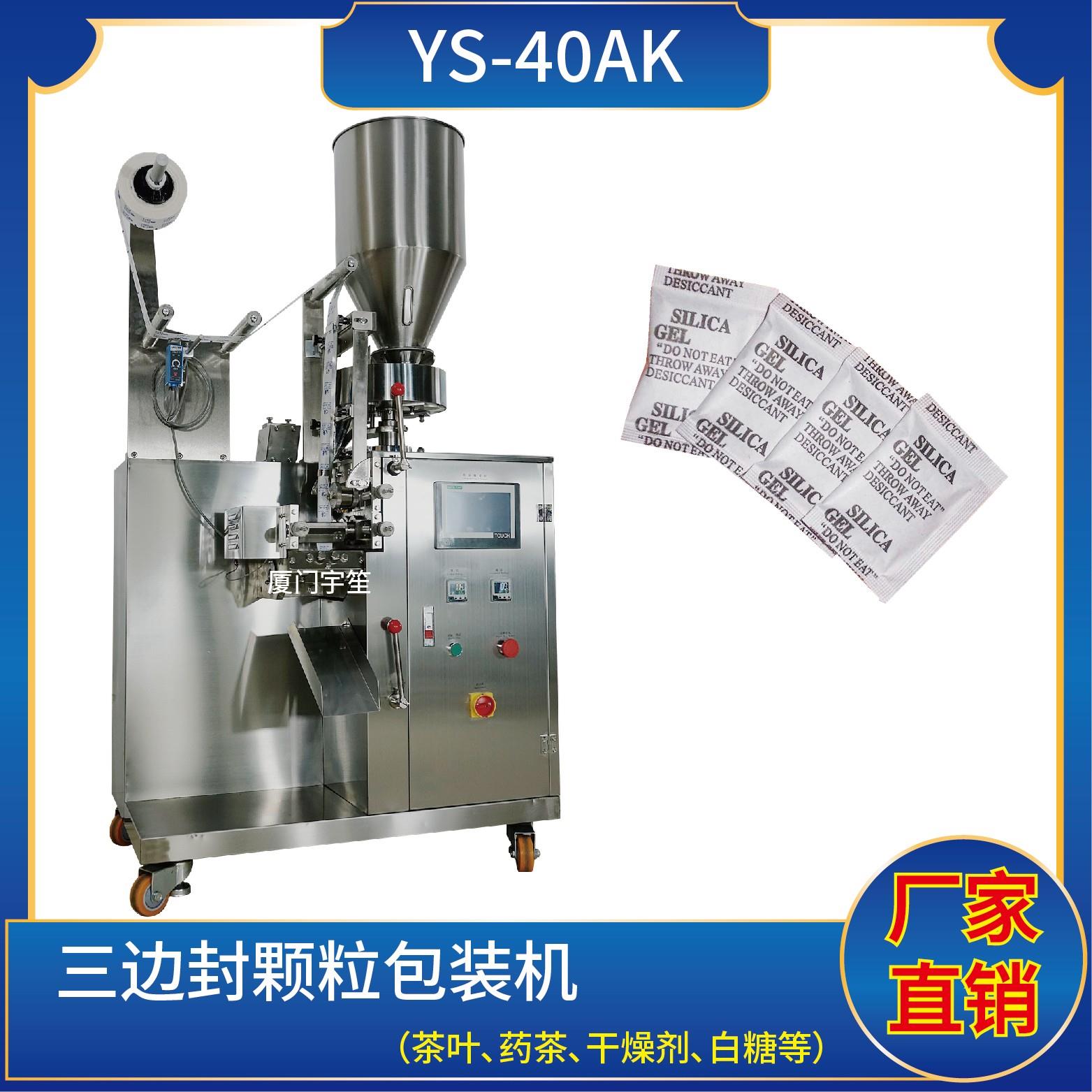 YS-40AK 三邊封顆粒自動包裝機(jī)特 點(diǎn) 1、適用于方便面行業(yè)湯包,干燥劑,沖劑,碎茶等小顆粒狀物品包裝。2、可自動完成制袋、計(jì)量、充填、封合、分切及計(jì)數(shù)等功能。3、包裝材料:茶葉濾紙、復(fù)合膜、無紡布。封口方式:三邊封技術(shù)參數(shù) 計(jì)量范圍:10 - 40 g(0.6 ~ 33 ml)制袋尺寸:長 ( L ) : 40 - 110 mm …