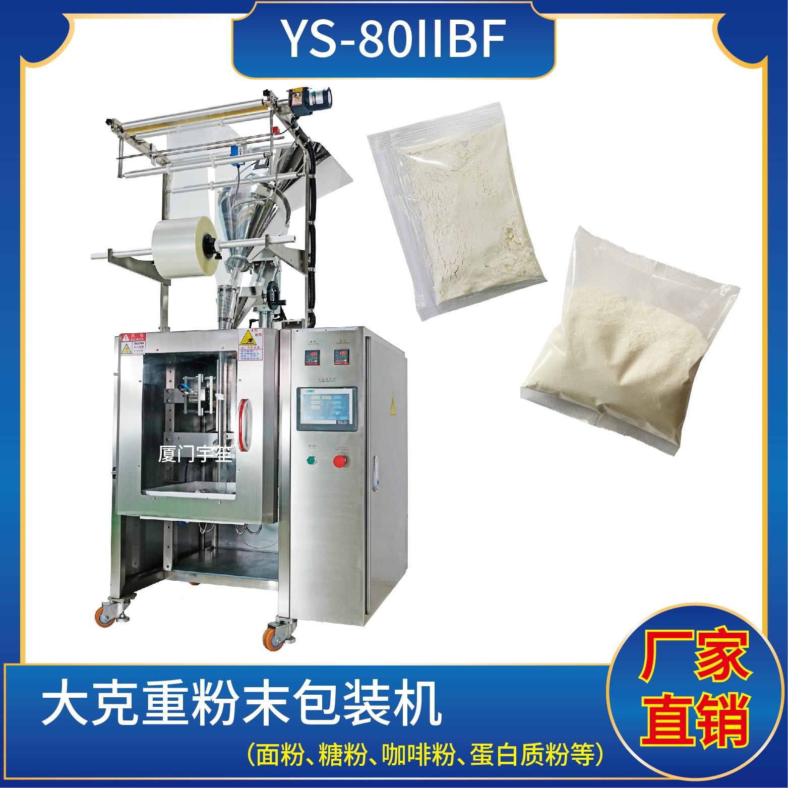 YS- 80IIBF 背封粉末包裝機(jī)特 點(diǎn) 1、適用于食品、醫(yī)藥、化工、化妝品行業(yè)中顆粒、粉劑、液體、醬料等物品的計(jì)量包裝。2、可自動完成制袋、計(jì)量、下料、封合、分切、計(jì)數(shù),可根據(jù)客戶要求配置打印批號等功能。3、觸摸屏操作,PLC控制,伺服電機(jī)控制袋長,性能穩(wěn)定、調(diào)整方便、檢測準(zhǔn)確。智能式溫控儀,PID調(diào)節(jié),保證將溫度的…