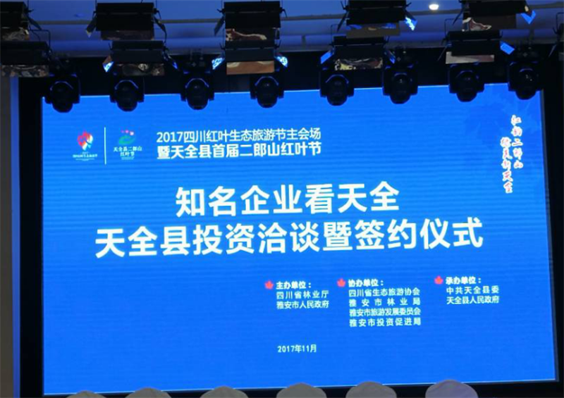 11月9日,雅安市交通建設(shè)(集團(tuán))有限責(zé)任公司董事長漆家華,總經(jīng)理羅倫全、副總經(jīng)理鐘焱宇參加“知名企業(yè)看天全”2017天全縣投資洽談暨簽約儀式。