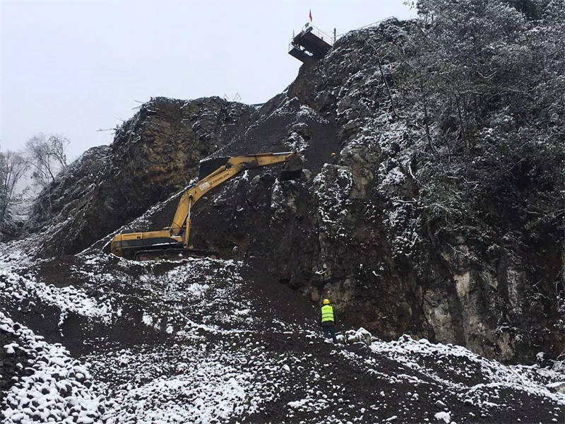 目前,廠區(qū)共8輛車在運行施工,主要用施工材料運輸,啟動3臺挖機進行礦山防護網(wǎng)安裝,初步完成安裝礦山防護網(wǎng)的前期準備工作。2月15日,舉行復(fù)工儀式,天全縣相關(guān)部門對項目進行復(fù)工資料驗收檢查,已具備開工條件。丹石公司員工正迎著風(fēng)雪在大山上加緊施工,確保魚泉獅子山礦山開采項目能夠盡快完工。