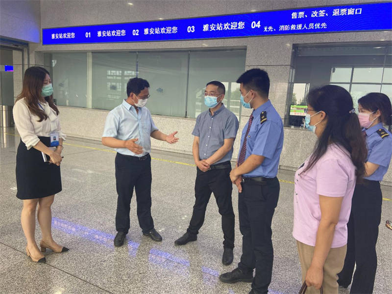 6月8日下午,市政府副秘書長陳武到雅安火車站檢查指導(dǎo)常態(tài)化疫情防控工作。市交通運輸局副局長龍興、市級相關(guān)部門及運通公司負(fù)責(zé)人陪同檢查。