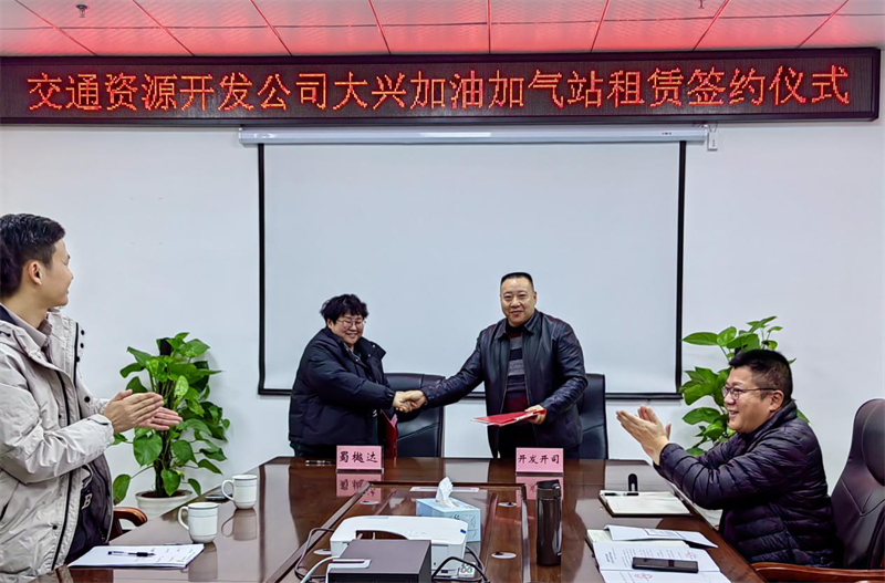 近日,雅安交建集團交通資源開發(fā)有限責任公司(簡稱開發(fā)公司)與四川蜀樾達石油化工有限公司(簡稱蜀樾達石化)舉行了大興加油加氣站租賃簽約儀式,蜀樾達石化公司法人王婭、董事長方高勇,開發(fā)公司董事長、總經(jīng)理王華,開發(fā)公司副總經(jīng)理熊艷、張兵出席簽約儀式。雙方就租賃相關(guān)事項達成共識,順利完成簽約,大興片區(qū)首個加油加氣站即將投入運營。
