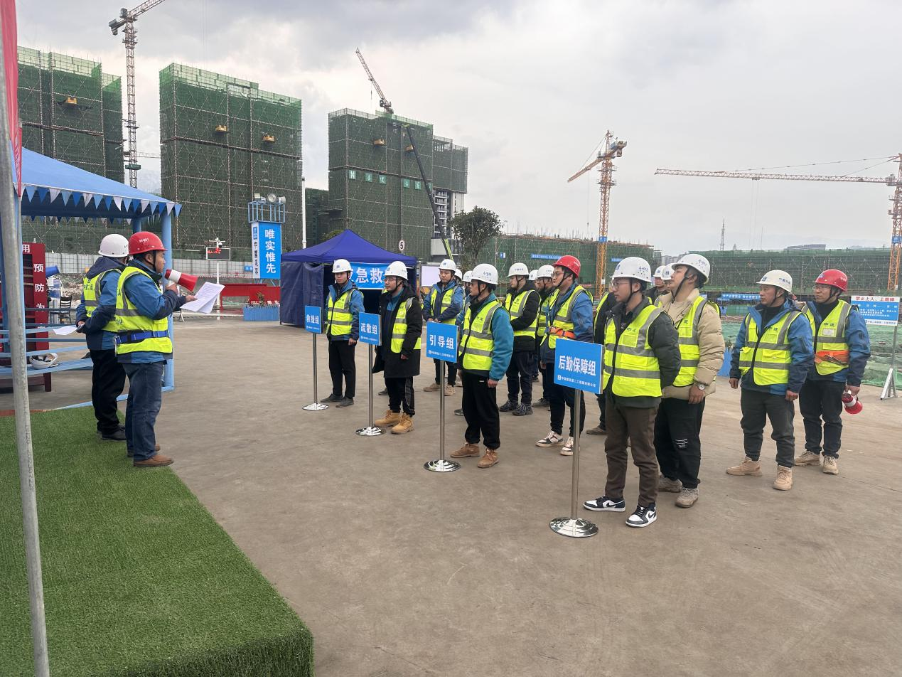 為進一步提高員工對突發(fā)事件的指揮和協(xié)調(diào)能力,檢驗地震應急預案的可行性和可操作性,提高抗震救災成員單位的快速反應能力。1月26日,雅安交建集團交通資源開發(fā)有限責任公司聯(lián)合中國建筑第二工程局有限公司交建蘭庭·天璽項目經(jīng)理部,在項目現(xiàn)場開展了防災減災應急演練。