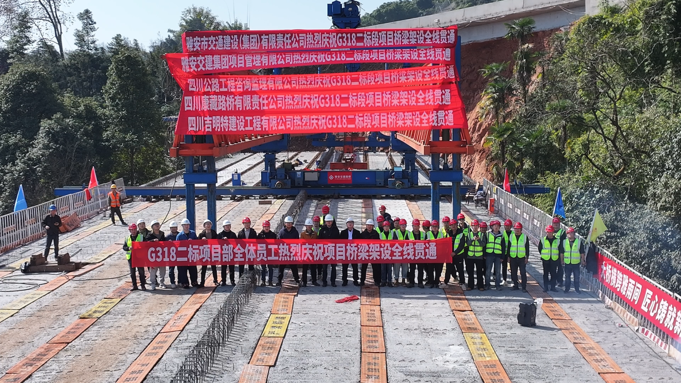 2月11日,隨著白果塘大橋最后一片T梁精準架設就位,國道318名山區(qū)黑竹(成都界)至雨城區(qū)多營段改建工程二標段實現(xiàn)全線貫通。