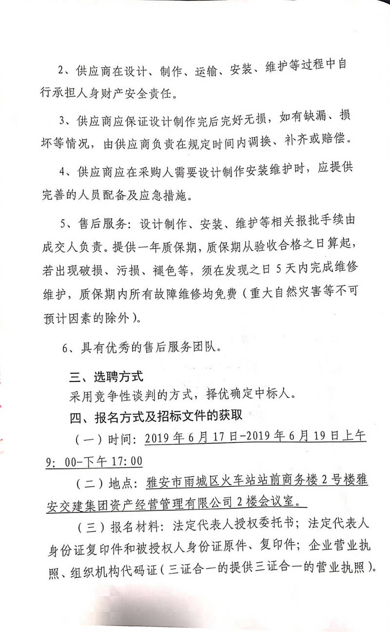 雅安交建集團(tuán)資產(chǎn)經(jīng)營管理有限公司關(guān)于選聘成雅高速金雞關(guān)互通及服務(wù)區(qū)項(xiàng)目(雨名快速通道)磨坊溝已征地范圍打圍項(xiàng)目競(jìng)爭(zhēng)性談判公告