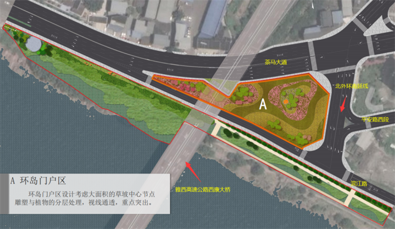 2.項目地點:雅安市雨城區(qū)斗膽片區(qū)茶馬大道、北環(huán)路、康藏路、濱江路交匯處,雅西高速公路西康大橋立交橋下。