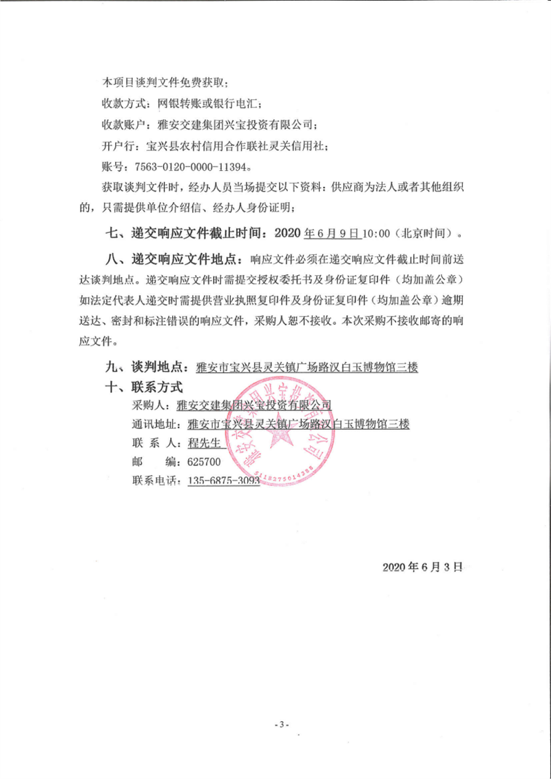 雅安交建集團興寶投資有限公司型號50裝載機采購項目(第二次)競爭性談判公告
