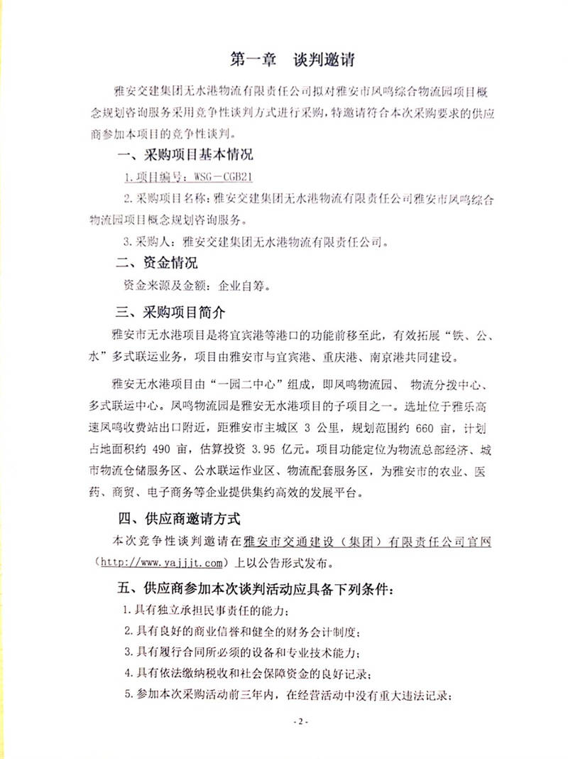 雅安交建集團(tuán)無水港物流有限責(zé)任公司雅安市鳳鳴綜合物流園項(xiàng)目概念規(guī)劃咨詢服務(wù)競(jìng)爭(zhēng)性談判公告
