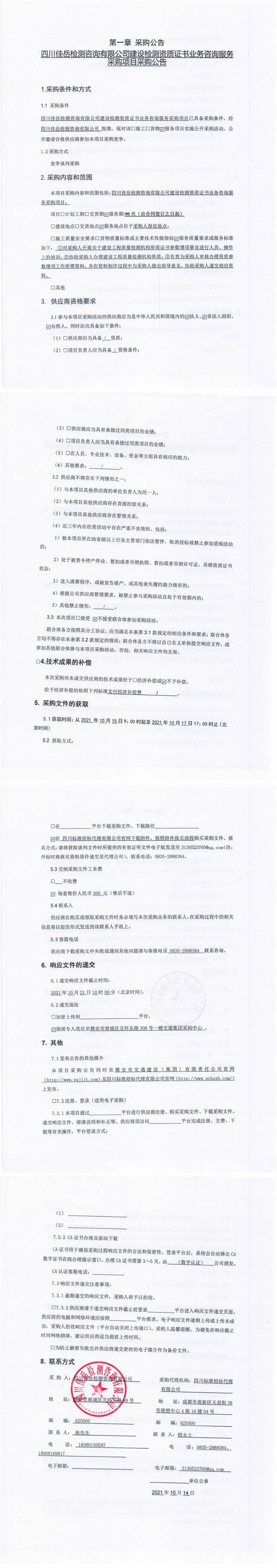 四川佳岳檢測(cè)咨詢有限公司建設(shè)檢測(cè)資質(zhì)證書(shū)業(yè)務(wù)咨詢服務(wù)采購(gòu)項(xiàng)目采購(gòu)公告