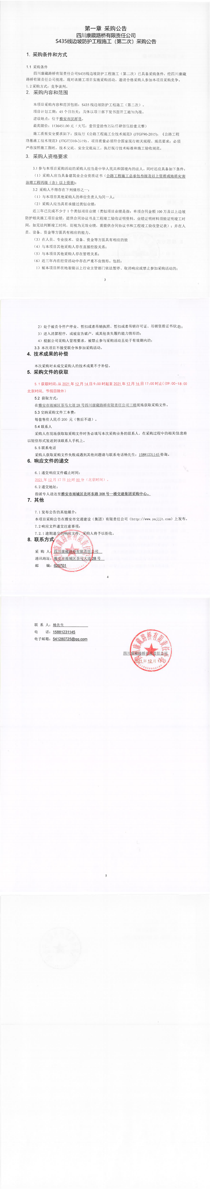 四川康藏路橋有限責(zé)任公司S435線邊坡防護工程施工(第二次)采購公告