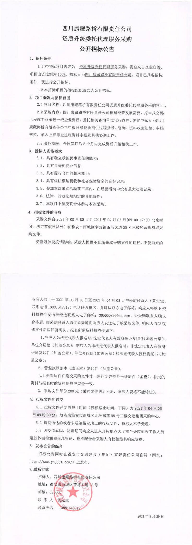 四川康藏路橋有限責(zé)任公司資質(zhì)升級(jí)委托代理服務(wù)采購(gòu)公開招標(biāo)公告