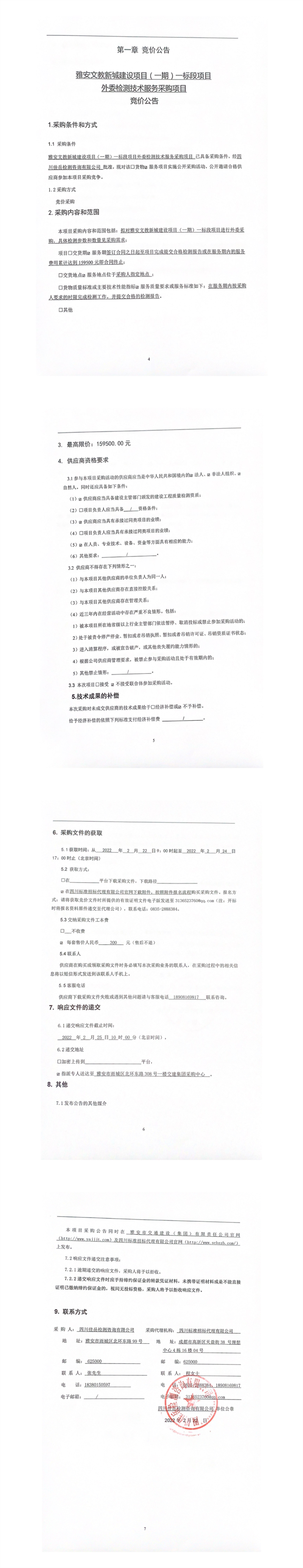 四川佳岳檢測咨詢有限公司雅安文教新城建設(shè)項目(一期)一標段項目外委檢測技術(shù)服務(wù)采購項目競價公告