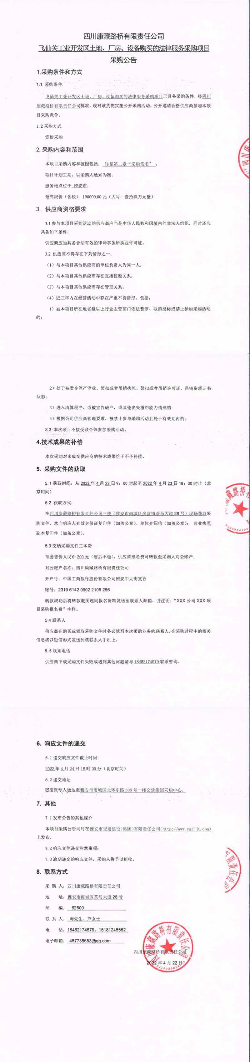 四川康藏路橋有限責(zé)任公司飛仙關(guān)工業(yè)開(kāi)發(fā)區(qū)土地、廠房、設(shè)備購(gòu)買(mǎi)的法律服務(wù)采購(gòu)項(xiàng)目采購(gòu)公告