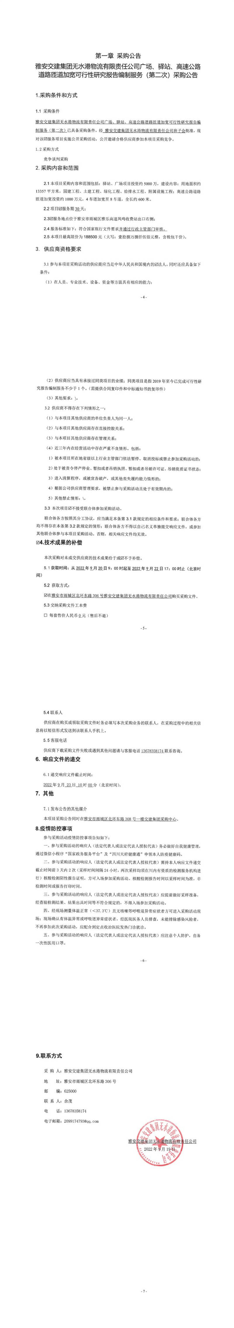 雅安交建集團(tuán)無水港物流有限責(zé)任公司廣場、驛站、高速公路道路匝道加寬可行性研究報告編制服務(wù)(第二次)采購公告