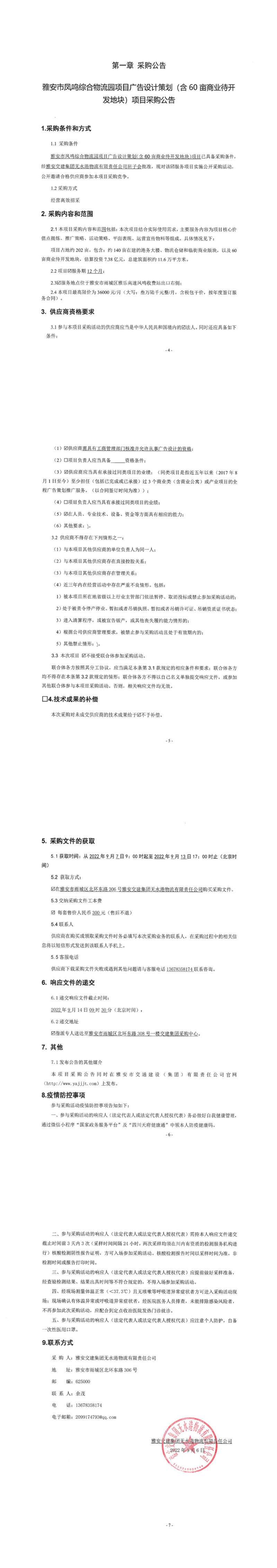 雅安交建集團無水港物流有限責(zé)任公司雅安市鳳鳴綜合物流園項目廣告設(shè)計策劃(含60畝商業(yè)待開發(fā)地塊)項目采購公告