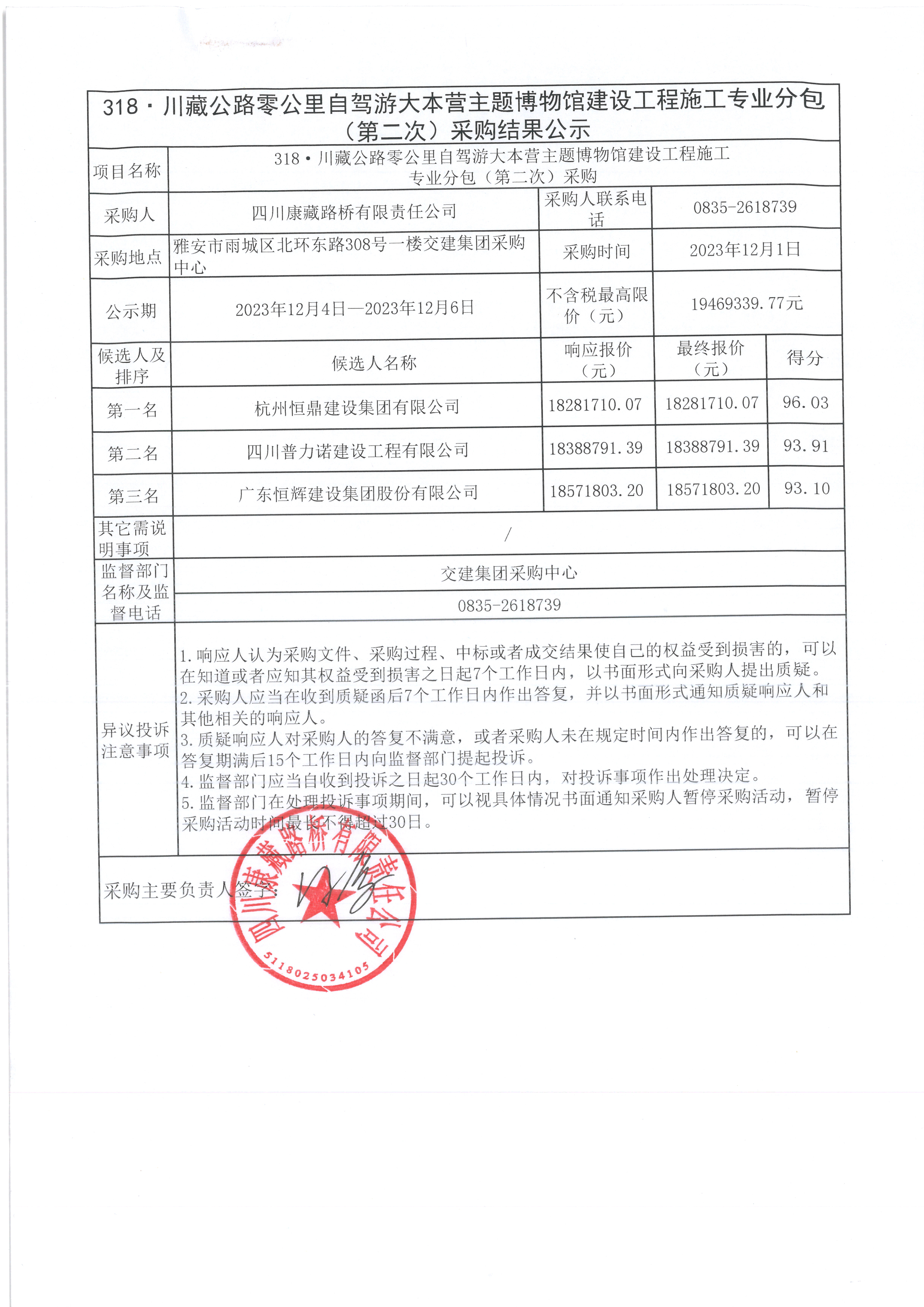 四川康藏路橋有限責(zé)任公司318·川藏公路零公里自駕游大本營(yíng)主題博物館建設(shè)工程施工專業(yè)分包 (第二次)采購(gòu)結(jié)果公示