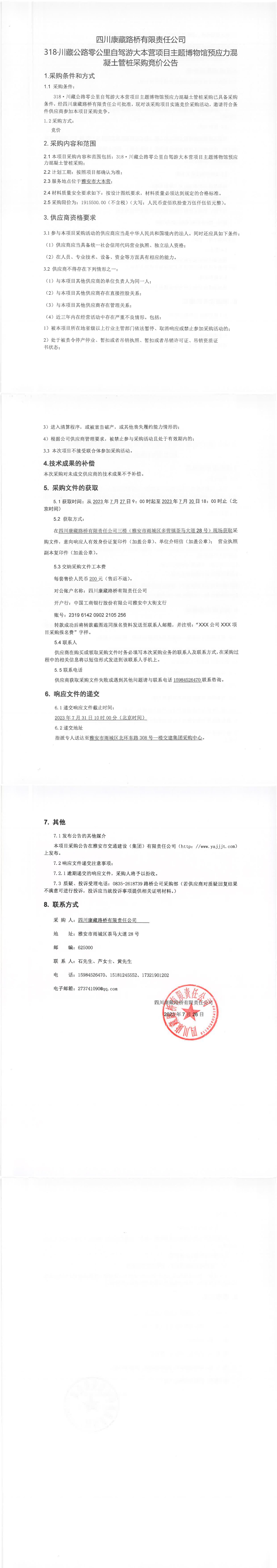 四川康藏路橋有限責任公司318·川藏公路零公里自駕游大本營項目主題博物館預(yù)應(yīng)力混凝土管樁采購競價公告