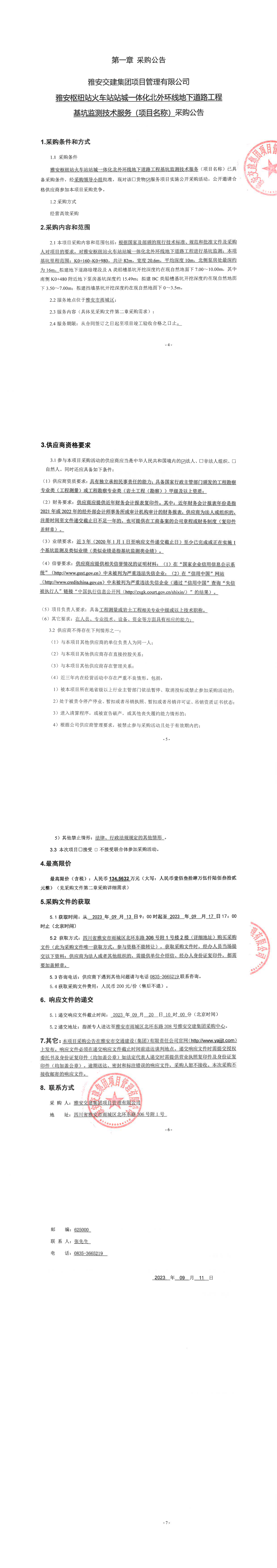 雅安交建集團(tuán)項(xiàng)目管理有限公司雅安樞紐站火車站站城一體化北外環(huán)線地下道路工程基坑監(jiān)測(cè)技術(shù)服務(wù)(項(xiàng)目名稱)采購(gòu)公告
