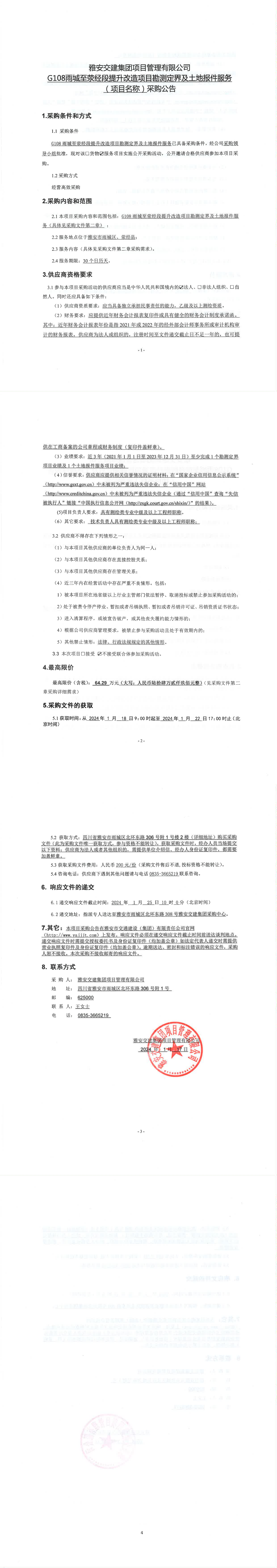 雅安交建集團(tuán)項(xiàng)目管理有限公司G108雨城至滎經(jīng)段提升改造項(xiàng)目勘測(cè)定界及土地報(bào)件服務(wù)(項(xiàng)目名稱)采購(gòu)公告