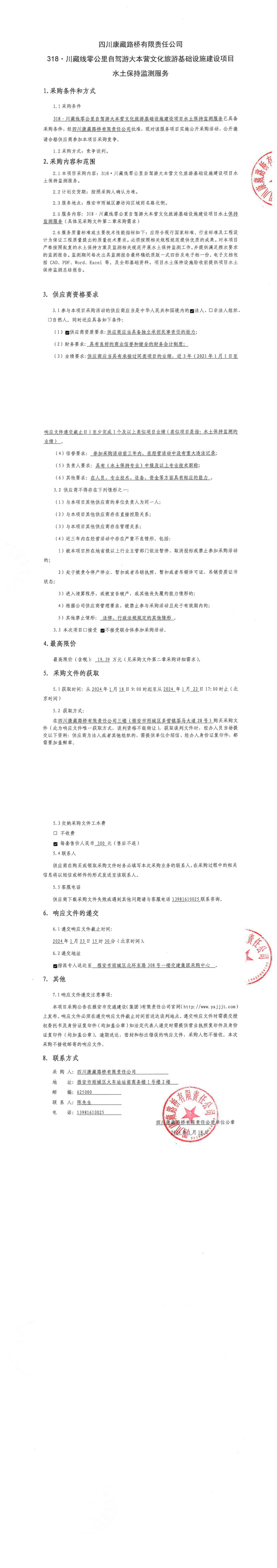 四川康藏路橋有限責任公司318·川藏線零公里自駕游大本營文化旅游基礎設施建設項目水土保持監(jiān)測服務采購公告