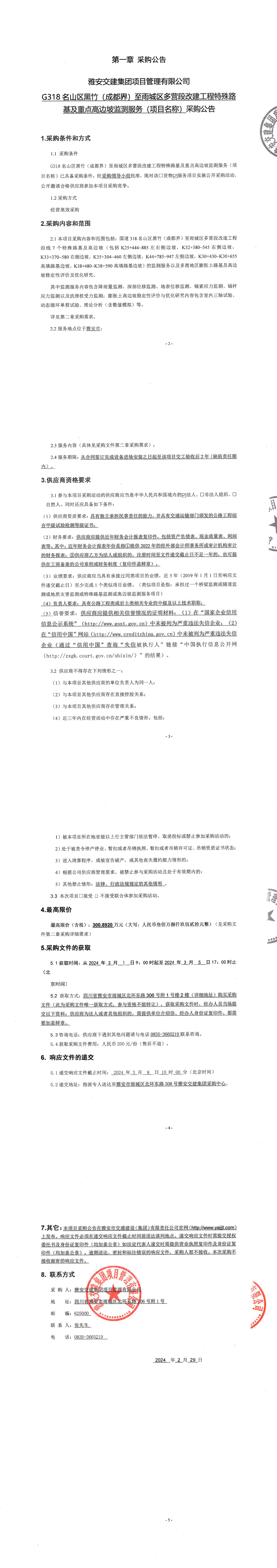 雅安交建集團(tuán)項(xiàng)目管理有限公司國(guó)道318名山區(qū)黑竹(成都界)至雨城區(qū)多營(yíng)段改造工程的特殊及重點(diǎn)路基高邊坡監(jiān)測(cè)服務(wù)(項(xiàng)目名稱(chēng))采購(gòu)公告