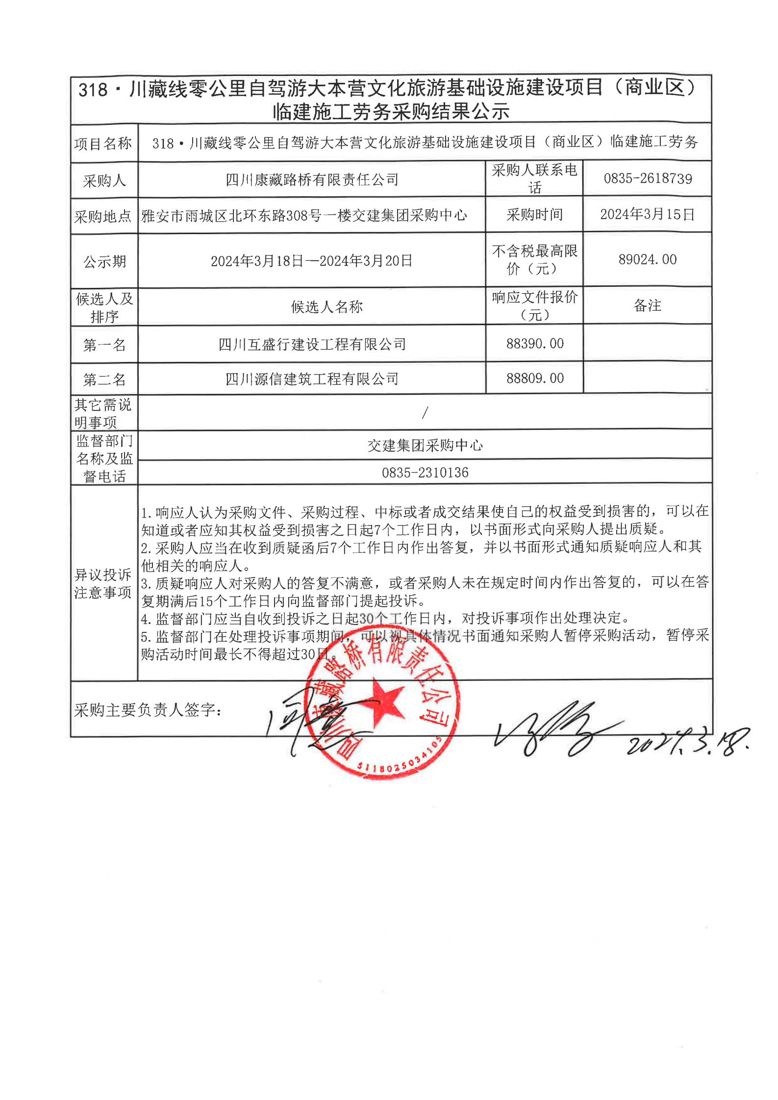 四川康藏路橋有限責(zé)任公司318·川藏線零公里自駕游大本營(yíng)文化旅游基礎(chǔ)設(shè)施建設(shè)項(xiàng)目(商業(yè)區(qū))臨建施工勞務(wù)結(jié)果公示