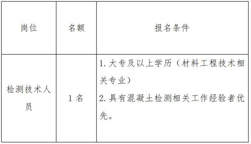 雅安交建集團康居建設工程質量與室內環(huán)境污染檢測有限公司是雅安市交通建設(集團)有限責任公司下屬子公司,主要從事民用建筑室內環(huán)境污染檢測業(yè)務,F(xiàn)根據(jù)公司業(yè)務發(fā)展需要,擬向社會公開招聘1名技術檢測人員,現(xiàn)將有關事項公告如下: