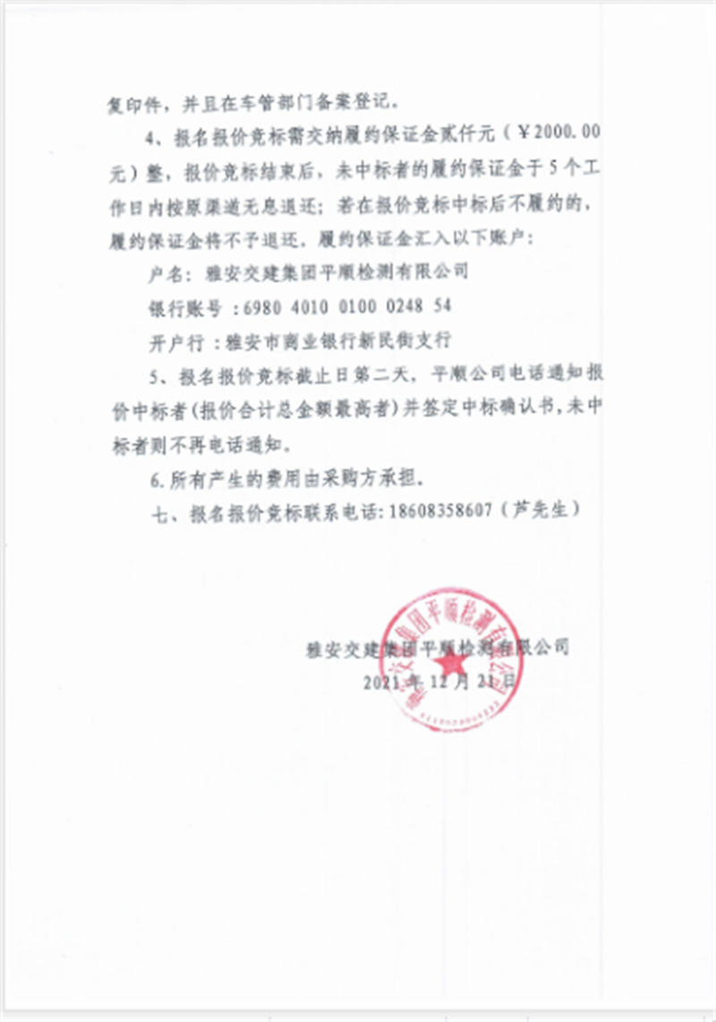 雅安交建集團平順檢測有限公司 關于處置49輛貨車相關情況的公告