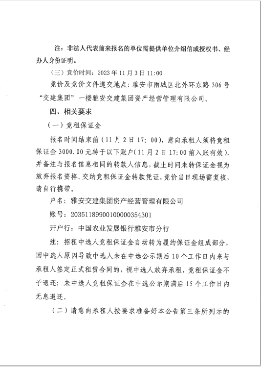雅安交建集團資產(chǎn)經(jīng)營管理有限公司 雨名快速通道(名山服務區(qū))3號樓商鋪招租公告