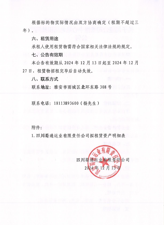 四川蜀通運業(yè)有限責任公司 關(guān)于蜀通公司維修中心場地招租掛網(wǎng)的 公告