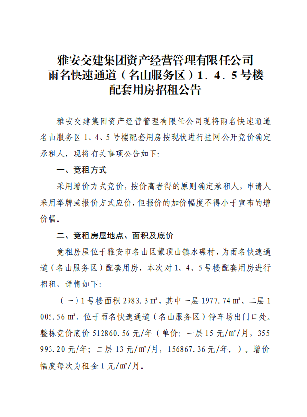 ÑŰ²½»½¨¼¯ˆFÙY®a(ch¨£n)½›(j¨©ng) I¹ÜÀíÓÐÏÞÈι«Ë¾ ÓêÃû¿ìËÙͨµÀ£¨Ãûɽ·þ„Õ…^(q¨±)£©1¡¢4¡¢5Ì–˜Ç ÅäÌ×Ó÷¿ÕÐ×⹫¸æ