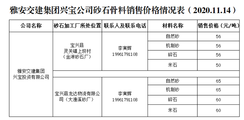 ÑŰ²½»½¨¼¯ˆFÅdŒš¹«Ë¾É°Ê¯¹ÇÁÏäNÊÛƒr¸ñÇé›r±í£¨2020.11.14£©