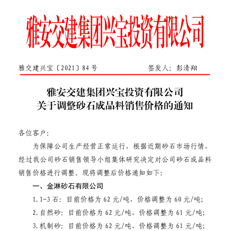 ÑŰ²½»½¨¼¯ˆF(tu¨¢n)µ¤Ê¯¹«Ë¾êP(gu¨¡n)ÓÚÕ{(di¨¤o)Õûɰʯ³ÉÆ·¹ÇÁÏäNÊÛƒr¸ñµÄ֪ͨ£¨2021.12.9£©