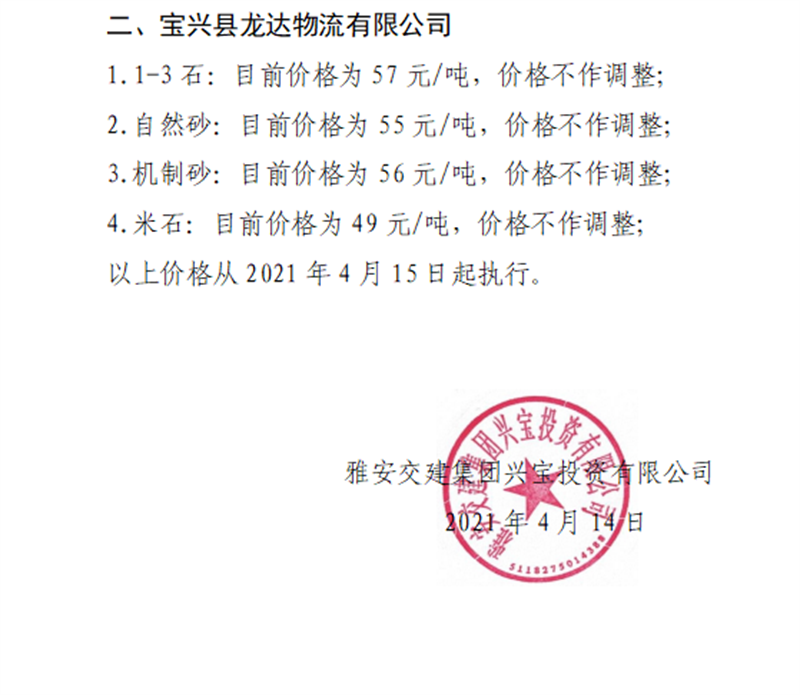 ÑŰ²½»½¨¼¯ˆFÅdŒš¹«Ë¾É°Ê¯¹ÇÁÏäNÊÛƒr¸ñÇé›r±í£¨2021.4.15£©